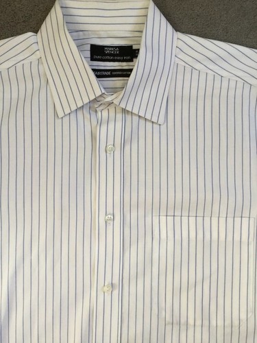 M S Pure Cotton White Shirt With Thin Blue Stripes And Long Sleeves Collar 16 Ebay